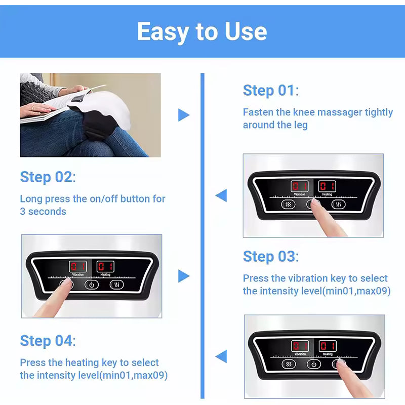 Enjoy soothing heat, gentle vibration, and cordless comfort designed to ease knee tension while you relax at home. Adjustable, easy to use, and perfect for daily relief.
